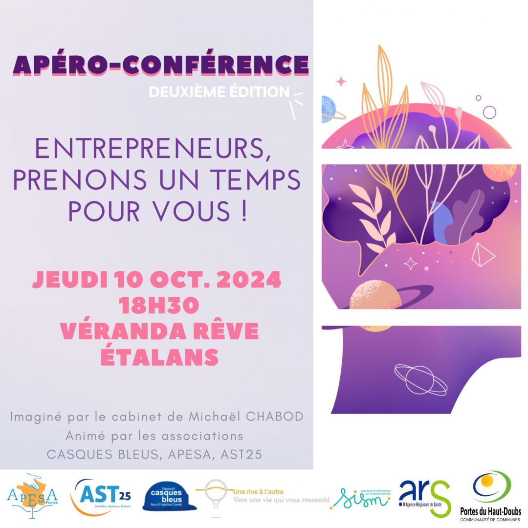 A cette occasion, nous vous proposons à vous, entrepreneurs et artisans du territoire, un Apéro-Conférence pour prendre soin de vous !